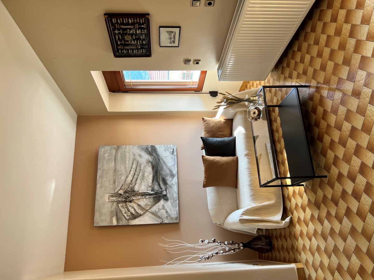 LIVING/ DINING AREA: Comfortable living room, dining table, flat screen TV, sofa.