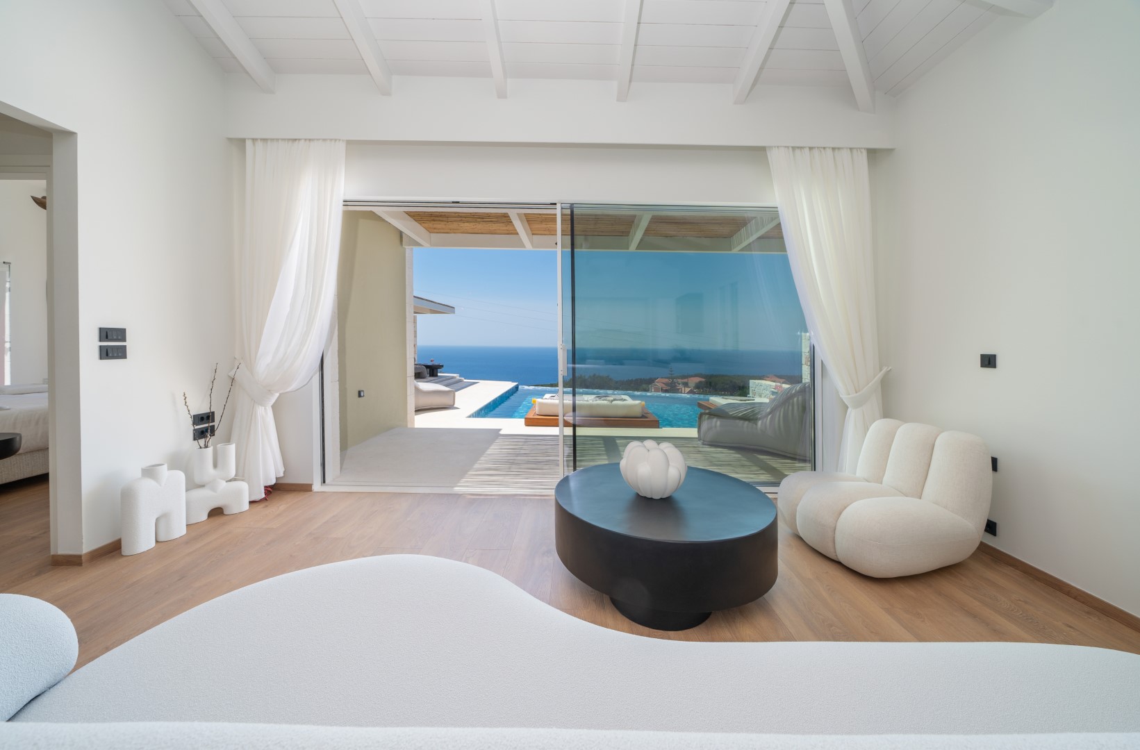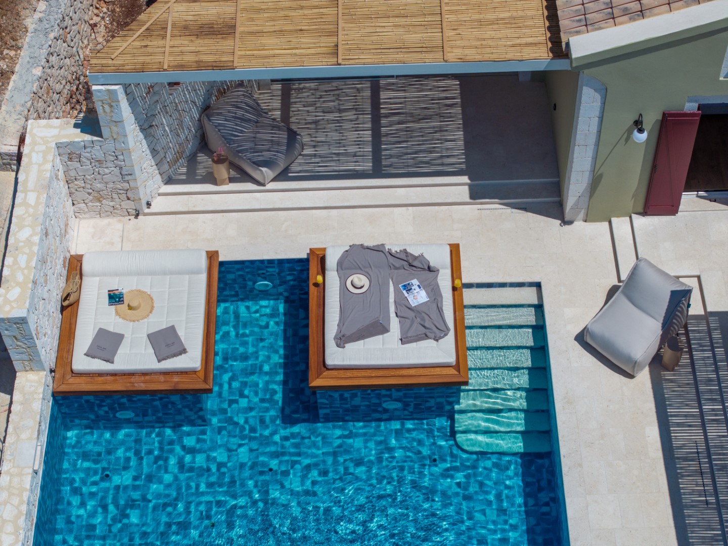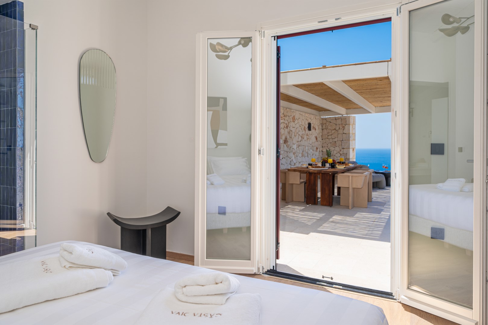 MASTER BEDROOM (ground floor): double bed (175x200), ensuite bathroom with shower, socket near the bed/ USB, access to the pool veranta with magnificent sea view.