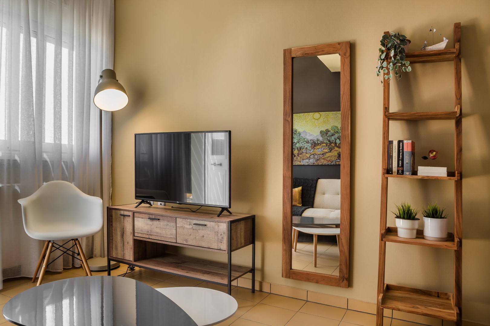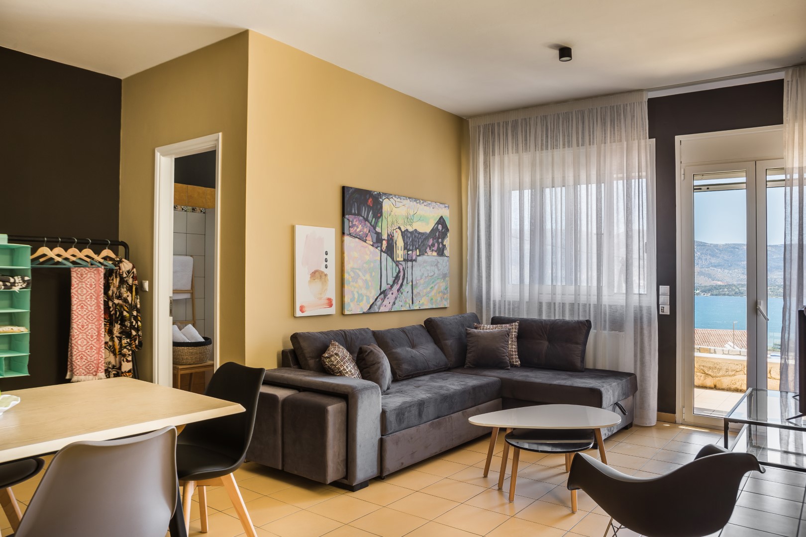 LIVING/ DINING AREA: Comfortable living room, dining table, flat screen TV.